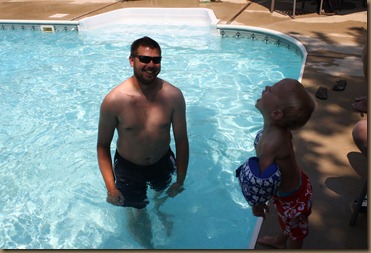 Sunday we had Family Fun Fest at Jac Jac’s house. The food and fellowship were great and the babies were all so good. I just stuck my hair up and went (NO make-up) which seems to be my look for the summer…ha! When you have 3 kids you are the last one to get ready and there is usually no time. So I was trying to avoid the camera and just take the pictures. Well that didn’t last long!